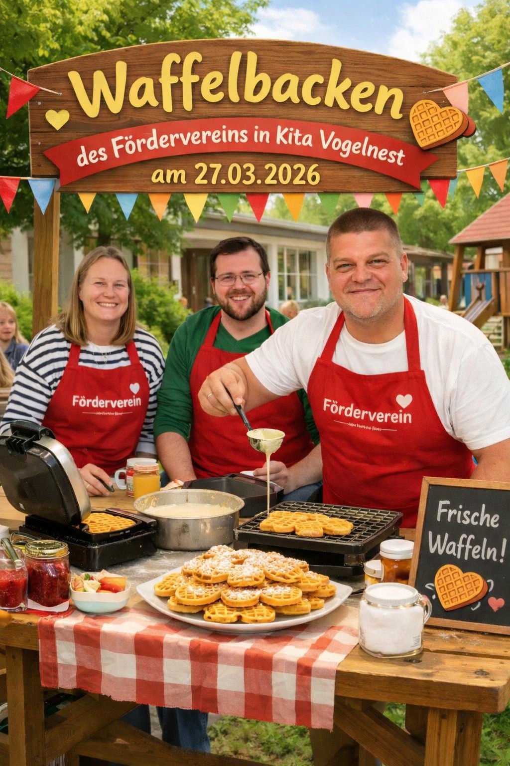 Hier schon mal die Info, dass am 27.03.2026 wieder frisch gebackene Waffeln in der Kita verkauft werden. Kleingeld also nicht vergessen, damit ihr nicht nur an dem leckeren Duft vorbeigehen müsst.
